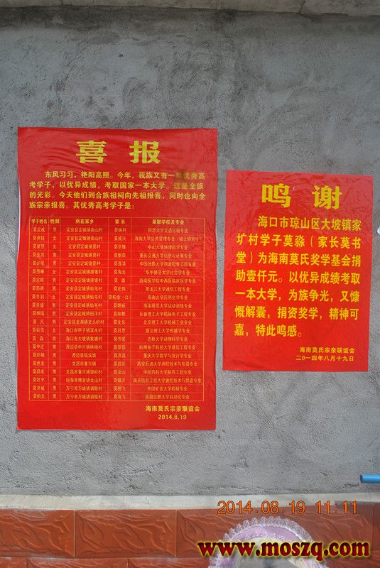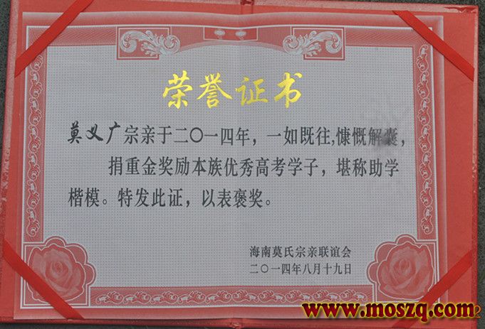 海南莫氏宗亲联谊会发放2014年奖学金